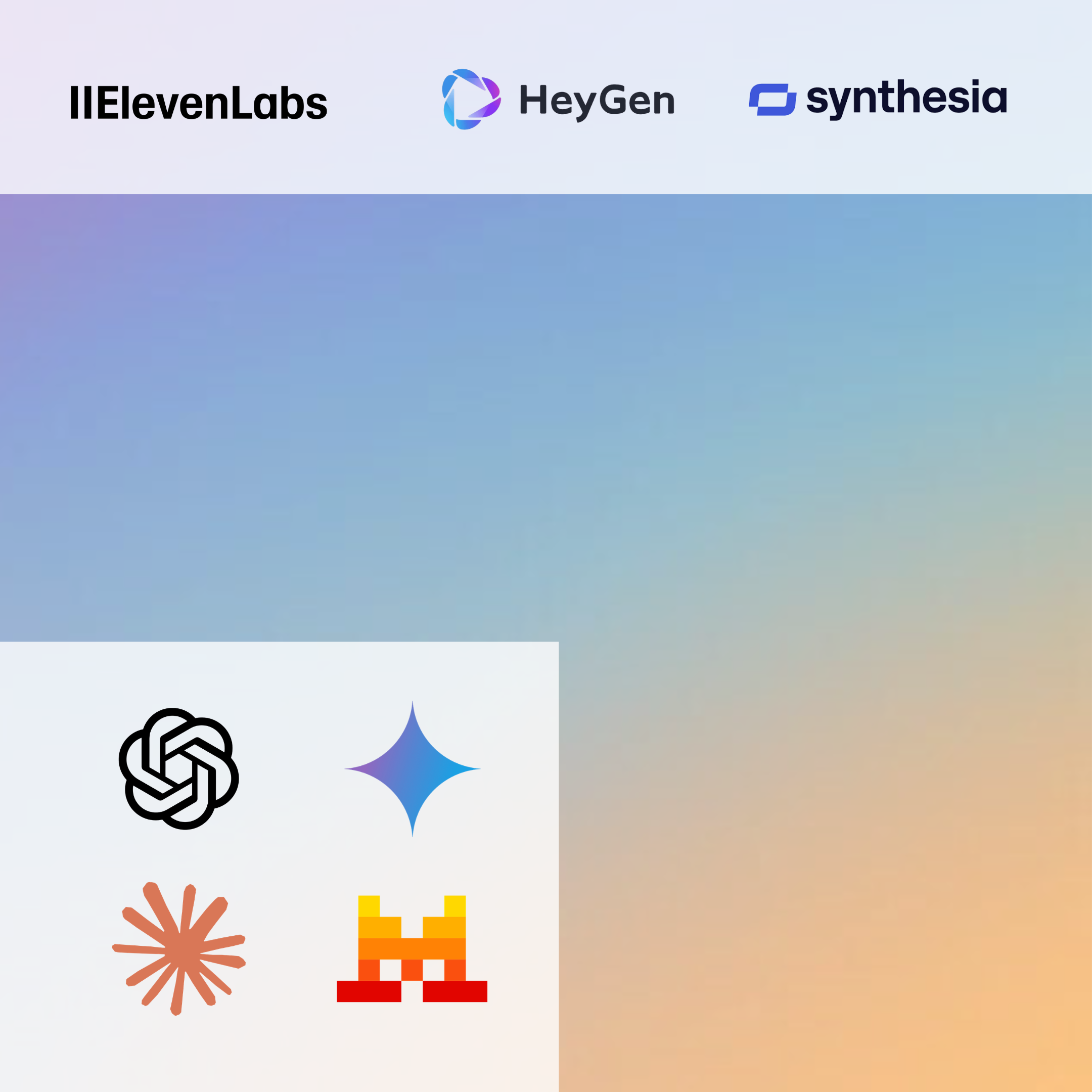 Go beyond text. Generate AI avatar videos with HeyGen and Synthesia, create voiceovers with ElevenLabs, produce programmatic video with JSON2Video. All from within PANTA. No separate accounts, no ungoverned tools, one audit trail.